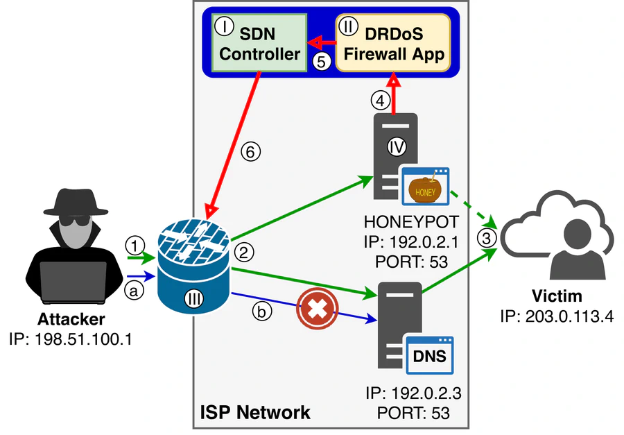 In this paper, we propose a novel idea to filter out garbage traffic from an ISP network. We employ a special type of a honeypot that collects information about ongoing DRDoS attacks, and Software Defined Network (SDN) paradigm offering us a unified interface to deploy firewall rules on a large variety of network devices. The rules block incoming amplification requests from reaching amplifiers located within the provider network rescuing vulnerable services from being abused. This prevents garbage traffic from leaving the network enabling the provider to save money and improve QoS. Moreover, our solution also contributes to victim’s liveliness because it reduces the attack traffic reaching the target network. In addition, it stimulates ISPs to implement ingress filtering best practices for all its network routers in order to minimize damage from an attacker located in the same network.